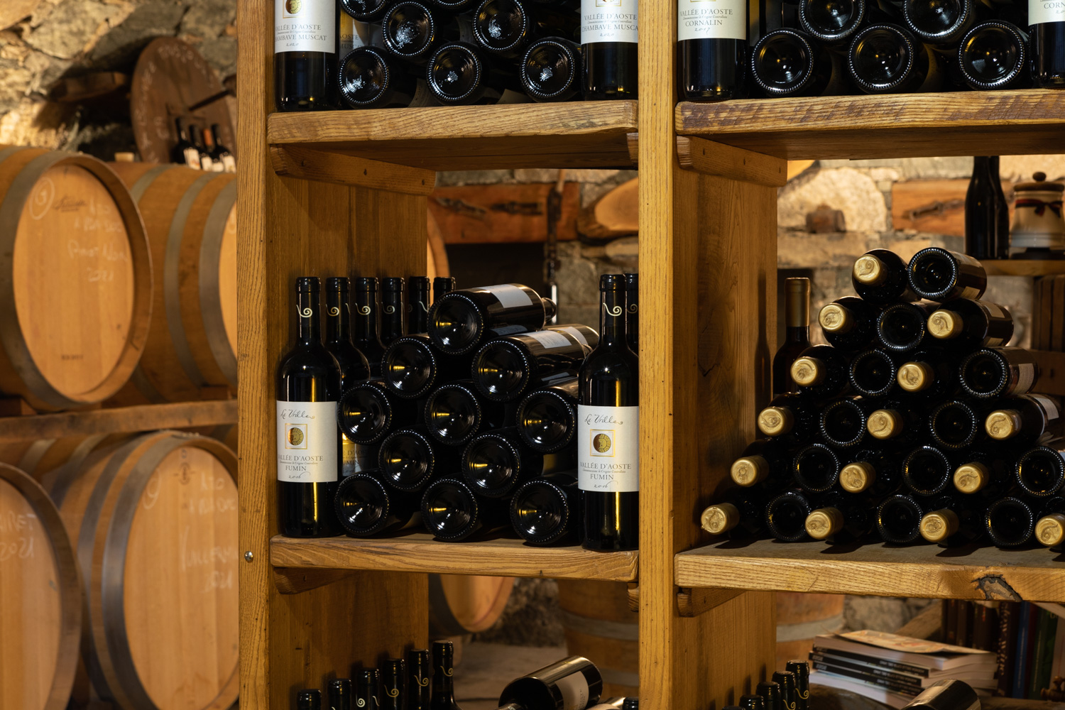 Nella barricaia, costruita a volta con la pietra verde di Verrayes, avviene l’affinamento in tonneaux del Fumin, del Clairetz e del Vuillermin. Questo stesso locale, piccolo e accogliente, ospita anche i momenti di degustazione, offrendo agli ospiti la possibilità di scoprire i vini della cantina direttamente nel luogo in cui maturano.