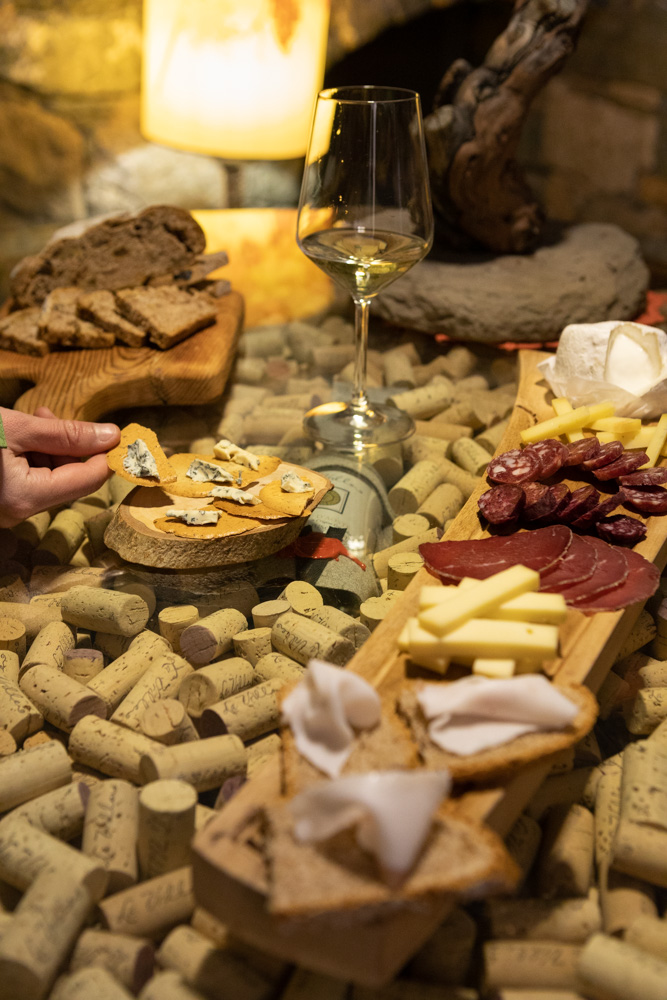 Oltre alla cantina, La Vrille è anche una struttura ricettiva caratterizzata da un’architettura tipica alpina in pietra e legno, che si integra armoniosamente con il paesaggio naturale circostante.